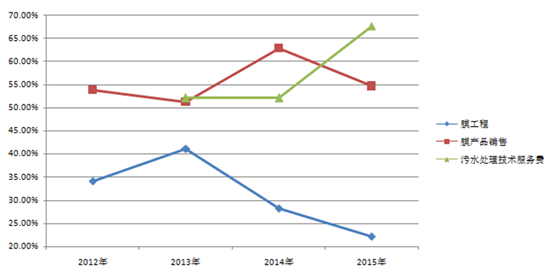 以津膜科技为例,膜产品销售毛利率远高于膜工程业务