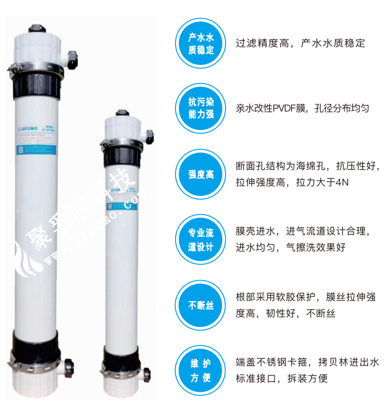 1产水水质稳定、2抗污染能力强、3强度高、4专业流道设计、5不断丝、6维护方便。