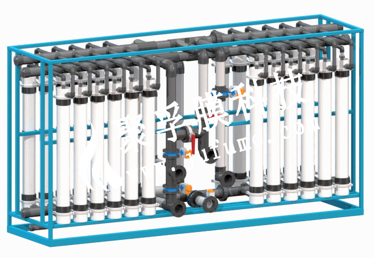 聚孚超滤膜系统进水要求低,过滤精度高,产水水质好,SDI<3,设计通量40-100LMH,特点是通量大、超低压运行,运行能耗低,抗污染能力强,清洗周期长,运行费用低,使用寿命3年以上,采用专业管道结构设计,拆装方便,系统集成度高,占地面积小。